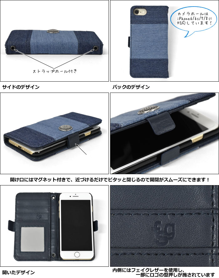 デニム 切り替え 手帳型 iPhoneケース /レディース iPhone6 iPhone6s iPhone7 iPhone8 アイフォン6 アイフォン6s アイフォン7 アイフォン8 スマホケース オシャレ かわいい 薄型 カード収納 手帳型 ケース カバー ミラー付き ショルダーストラップ チェーン ショルダー/ p