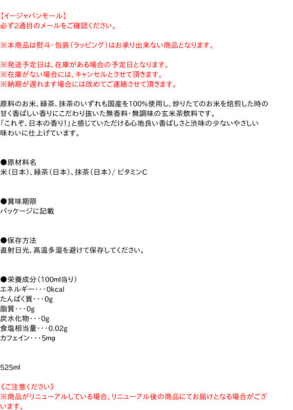 伊藤園 お?いお茶炒りたて玄米茶525ml ×24個 はコチラ >>【イージャパンショッピングモール】内のみのお買い物は、送料一律でどれだけ買っても同梱する事が出来ます。