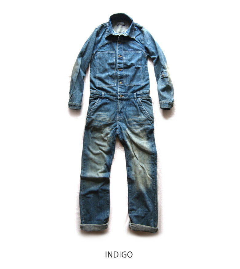 ツナギ つなぎ オールインワン 送料無料 デニム メンズ オーバーオール ジーンズ デニムツナギ 作業着 お洒落 オシャレ DENIM ALL IN ONE ヴィンテージ ビンテージ加工 古着加工 USED加工