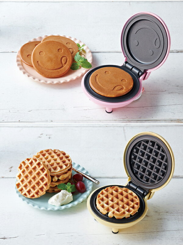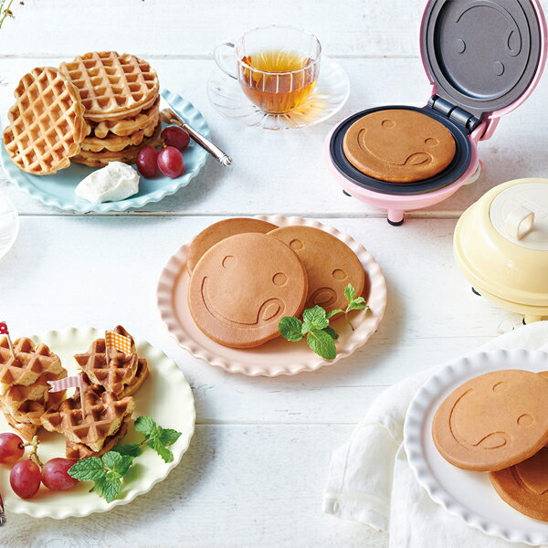 フォトジェニックな愉しい食卓 かわいいパンケーキ、ワッフルが3分で完成! スマイルベイカーミニは、火を使わずにかんたんにパンケーキやワッフルが焼けるホットプレート。