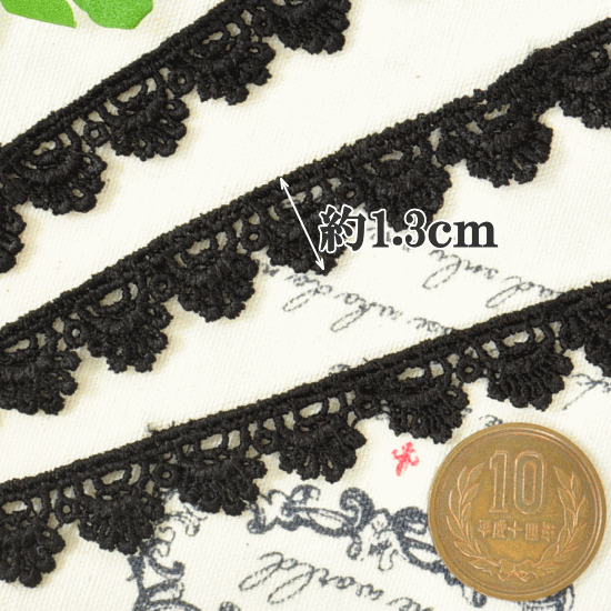 黒 ケミカルレース 13M 《 ケミカル レース 手芸用レース ナチュラル 手作り 手芸用材料 》