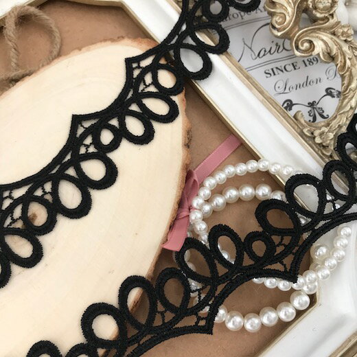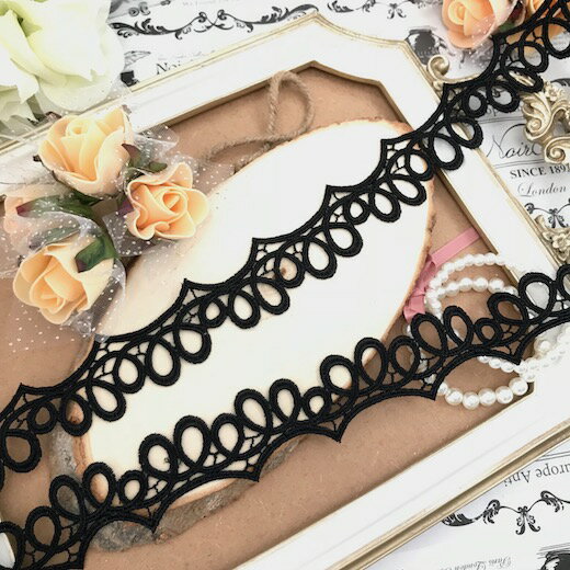 ケミカルレース バラ模様 バラ柄 ローズレース リボン 素材 ハンドメイド パーツ 黒 ブラック 手芸 トリム ハンドメイド パーツ 素材 手芸 手作り 装飾