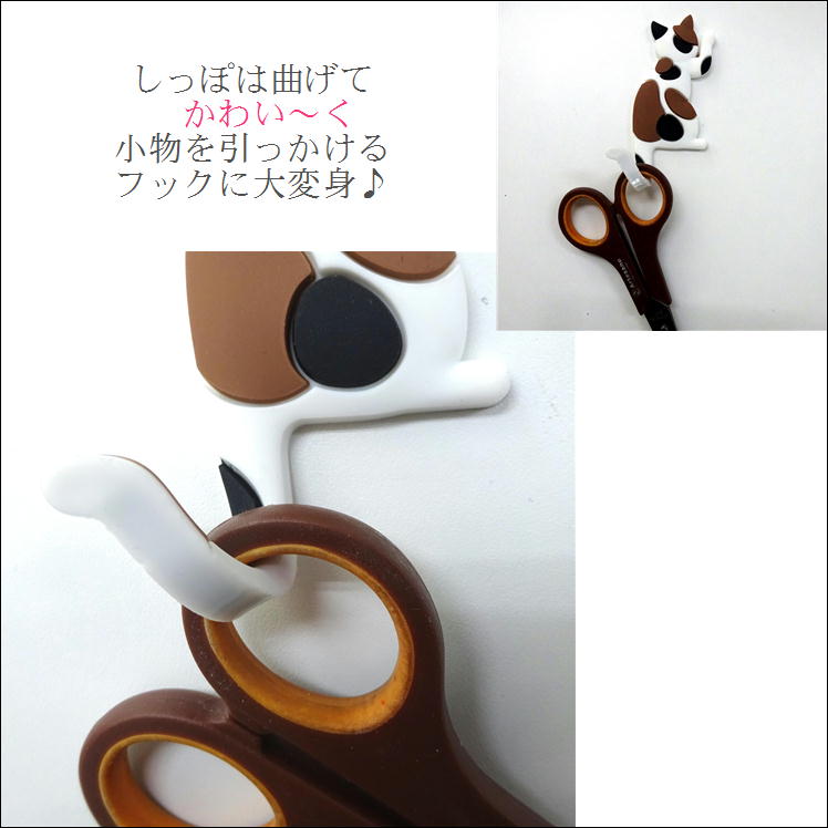 ・鉄板の入ったしっぽは曲げ伸ばし 自由自在! 小物を引っかけるフックになります。